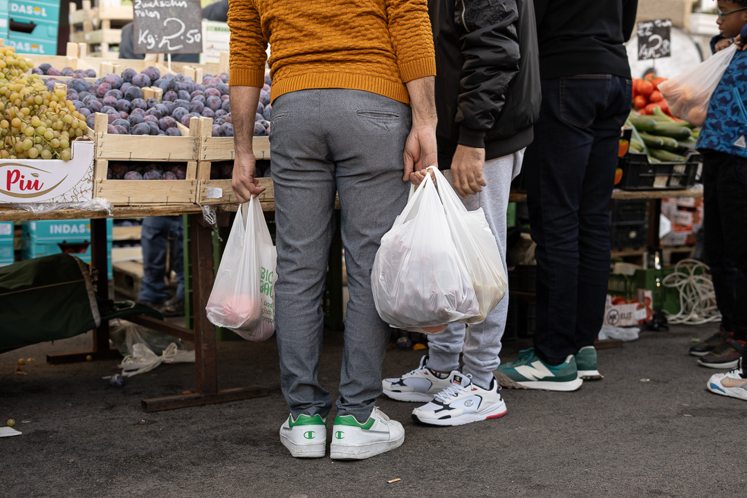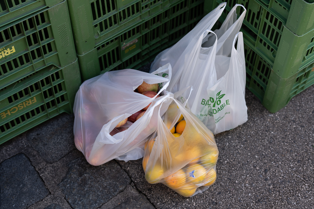 Mio Bio is a photographic project that uses a documentary and staged approach to investigate the use of plastic packaging and bioplastic bags in grocery shopping.